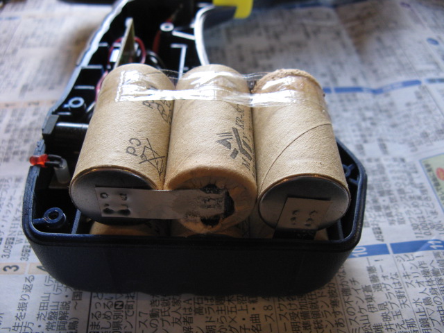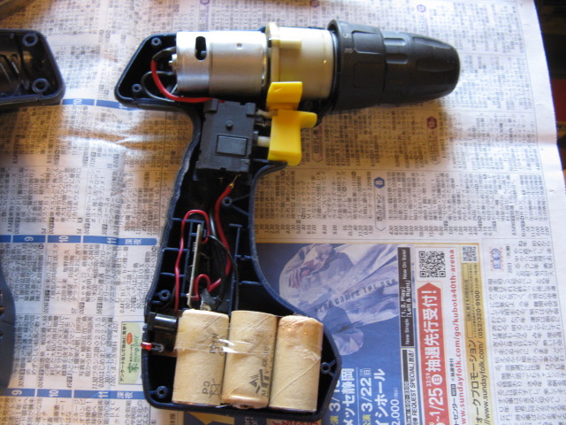 ・充電ドリルドライバーの電池の修理 充電池が故障していたので、ラジコン用のニッケル水素電池に変更しました。