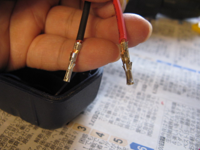 端子もアレコレしましたが取付できました。これをカプラの中に挿入するとカエシがかかって外れなくなります。